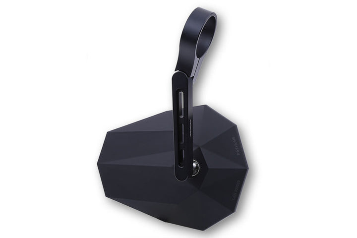 Stealth-X5 från Highsider är en kompakt och kraftfull styrändsspegel med kort arm och futuristisk design. Den är tillverkad i svartlackerad aluminium och passar både 7/8” (22 mm) och 1” (25,4 mm) styren. Med sin korta arm ger den ett sportigt uttryck utan att kompromissa med sikt eller säkerhet. Spegeln är E-godkänd och kan monteras på både vänster och höger sida.