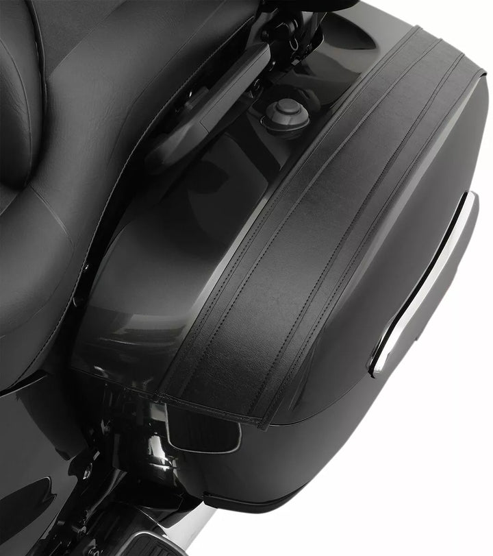 Saddlebag Lid Bras stop scratches and cover those that are already there, Tapered design leaves the saddlebag lids artfully exposed while protecting and covering the front portion from marring, Secured in place with hook-and-loop material to the inside top of the saddlebag lid in four locations for a secure fit, Remove easily for cleaning and waxing, Made in the U.S.A.