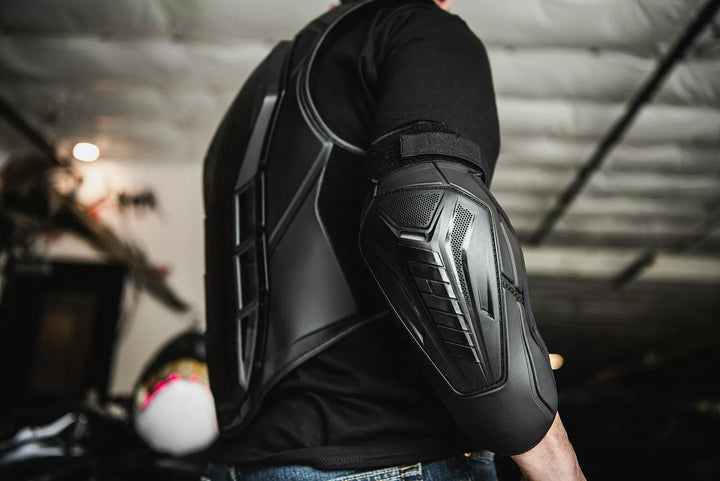 Vented bio-foam and air mesh chassis are paired to articulating injection-molded shells with airflow channels, Low profile design fits under most parts, Dual-stretch adjustment straps keep protectors securely in place, D3O® impact protectors help reduce transmitted impact energy, D3O® impact protectors Protection Level 1.