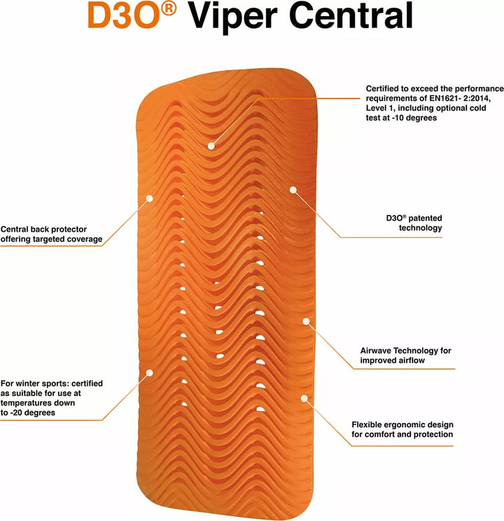 Extremely flexible, low profile and lightweight, Airwave technology for improved airflow, For winter sports: certified as suitable for use at temperatures down to -20°, 13 mm thickness, Back protector EN 1621-1:2014 Level 1.