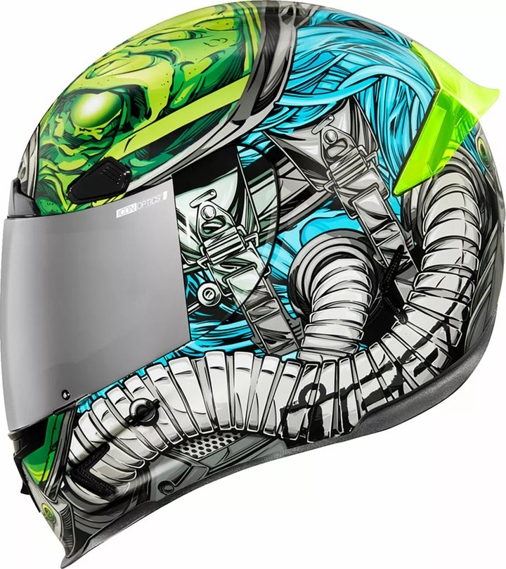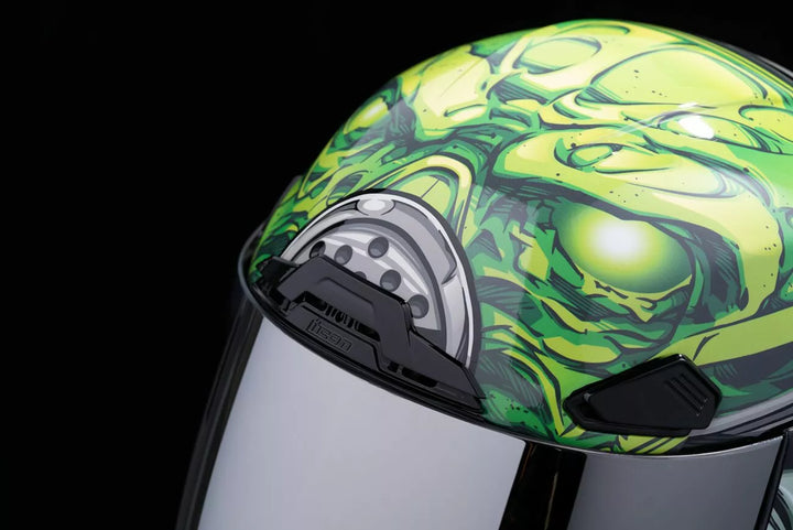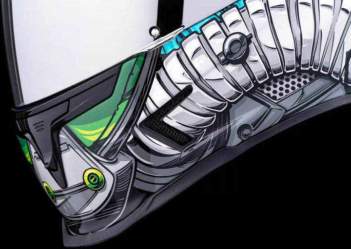 ICON Optics™ visiret är både immfritt och snabbt utbytbart tack vare det smarta Rapid-Release™ systemet. Hjälmen levereras med både ett klart visir och ett RST Silver visir för att du ska kunna anpassa dig efter ljusförhållandena.