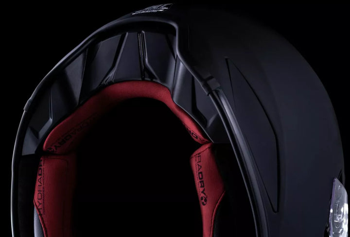 Continuous venting system, Sculpted neck roll, Internal airflow geometry, Removable molded breath deflector, Handcrafted FRP shell for optimum strength with minimized weight, Fog-free Domain™ Shield with Rapid-Release™ System, Removable Hydradry™ 3-piece moisture wicking liner, Removable chin-curtain, Upgradeable to HelmLink™ Bluetooth® communication system (sold separately), Includes Clear Domain™ Shield