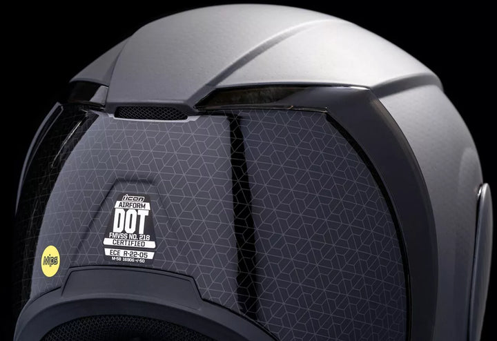 Injection molded polycarbonate shell for strength, Prolock™ positive shield locking system, Continuous venting system, Fog-free ICON Optics™ Shield with Rapid-Release™ System, Sculpted neck roll, Internal airflow geometry, Internal Dropshield™ with exterior switch, The Dropshield™ visor must only be used while the main face shield is in the fully closed position, Removable molded breath deflector, Removable Hydradry™ 3-piece moisture wicking liner, Internal speaker pockets work with ICON's R.A.U. Bluetooth device, Includes Clear & Dark Smoke ICON Optics™ Shield, Includes Dark Smoke Dropshield™, Includes Black Airform Chin Vent™