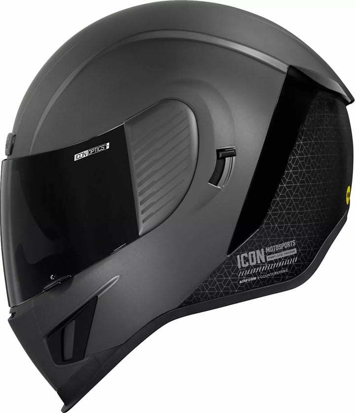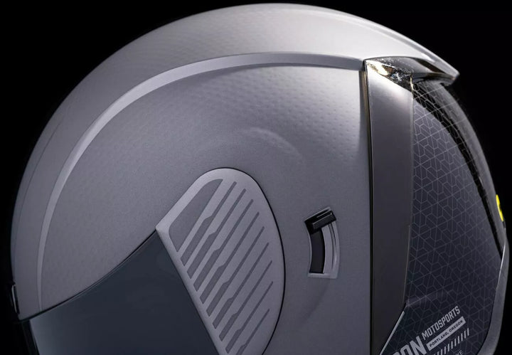 Injection molded polycarbonate shell for strength, Prolock™ positive shield locking system, Continuous venting system, Fog-free ICON Optics™ Shield with Rapid-Release™ System, Sculpted neck roll, Internal airflow geometry, Internal Dropshield™ with exterior switch, The Dropshield™ visor must only be used while the main face shield is in the fully closed position, Removable molded breath deflector, Removable Hydradry™ 3-piece moisture wicking liner, Internal speaker pockets work with ICON's R.A.U. Bluetooth device, Includes Clear & Dark Smoke ICON Optics™ Shield, Includes Dark Smoke Dropshield™, Includes Black Airform Chin Vent™