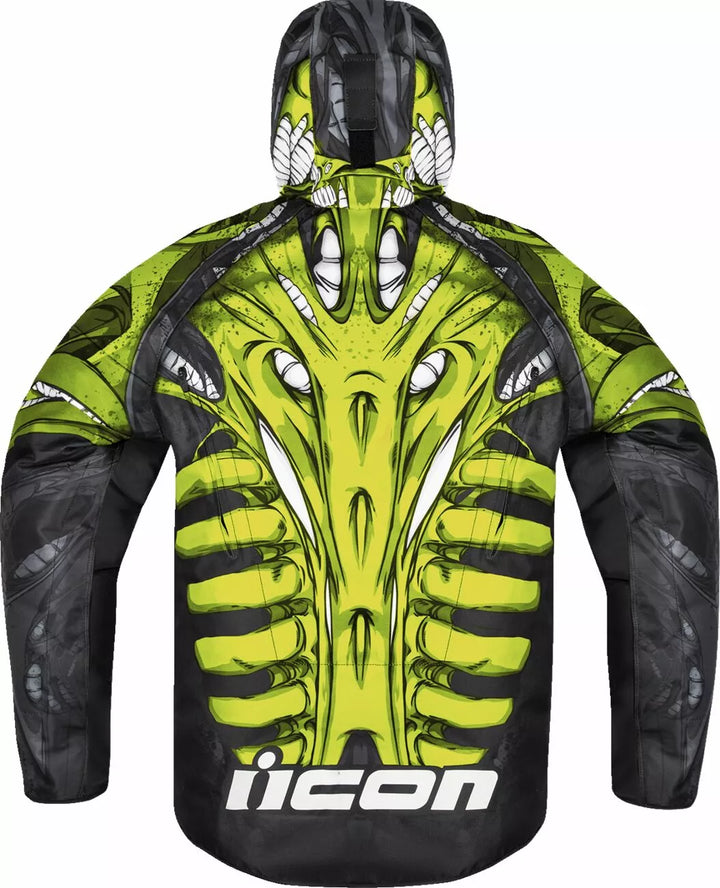 Airform Manik'r™ graphic on front and back of jacket, 420D Polyester chassis with 300D Polyester internal reinforcement, PU-Coated shell material with DWR finish, D30® removable Viper back protector; elbow and shoulder impact protectors, Bungee cord style drawstring hood, AirFly™ center front mesh panel with chest and back zippered vents , Vented cuff zippers, Back protector EN 1621-2 Level 1