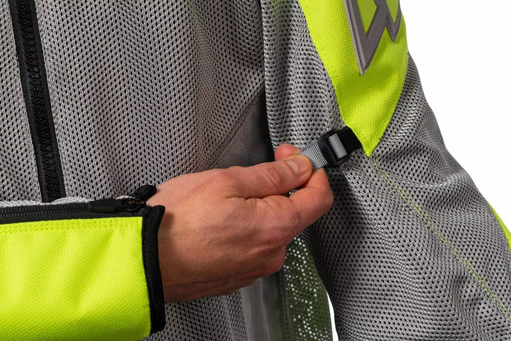Durable 300D polyester and Iron Weave™ Mesh chassis, Adjustable waist and arm strap, ICON® sport fit, YKK® zippers, Back protector EN 1621-2 Level 1, EN 17092-4:2020 – A Class