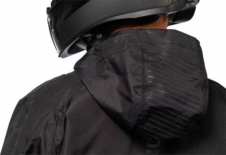 Removable insulated vest liner, Internal 300D polyester reinforcements, Hycor™ waterproof/breathable chassis, Oversized pit vents, ICON® relaxed fit, Roll and stow hood, Back protector EN 1621-2 Level 1