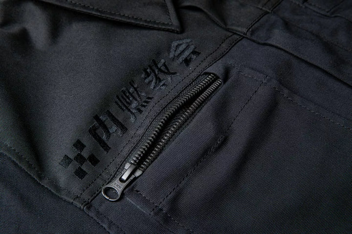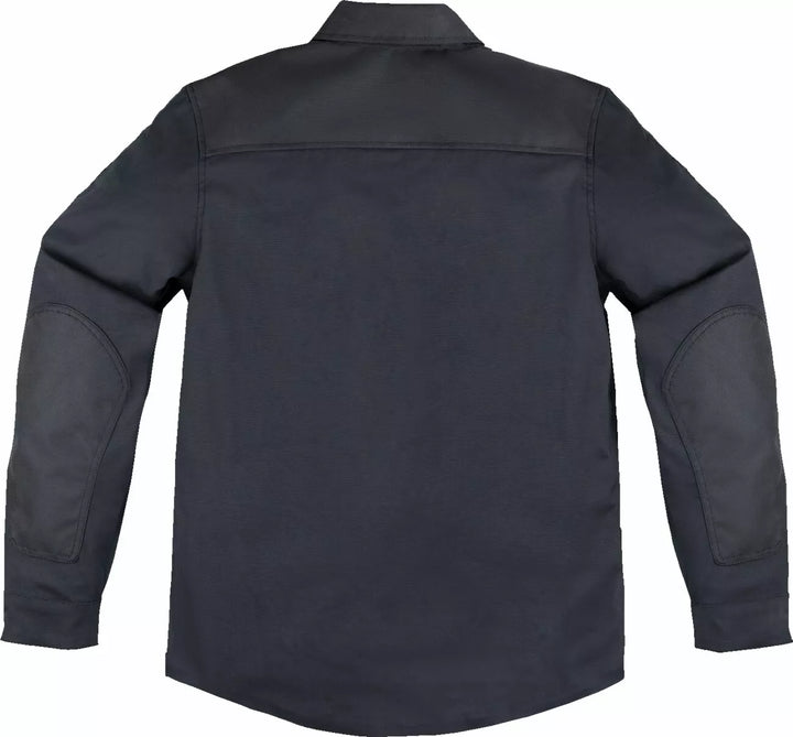 Elbow and shoulder LP1 impact protectors, Zipper vents at cuff and chest, YKK® zippers, Durable 400D polyester and cotton stretch canvas chassis, Removable Viper back protector, ICON® relaxed fit, 400D polyester reinforcements in elbows & shoulders , Back protector EN 1621-2 Level 1