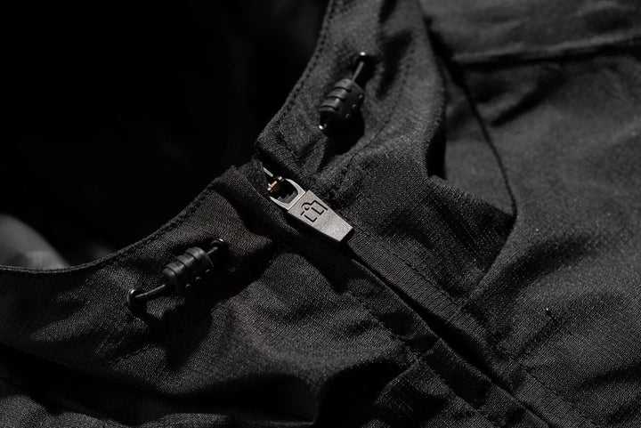 ICON® relaxed fit, Hycor™ waterproof/breathable chassis, Oversized pit vents, Internal 300D polyester reinforcements, Removable insulated vest liner, Roll & Stow hood, Back protector EN 1621-2 Level 1, EN 17092-4:2020 – A Class