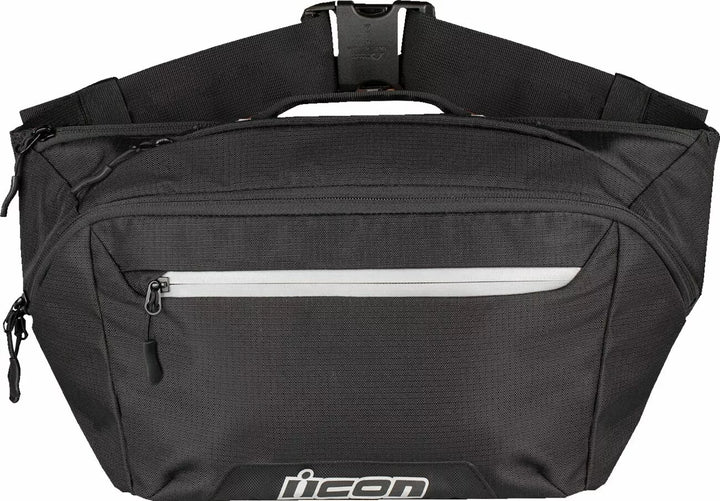 Fanny pack style bag with Icon logo, front zip, and buckle closure