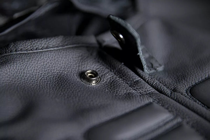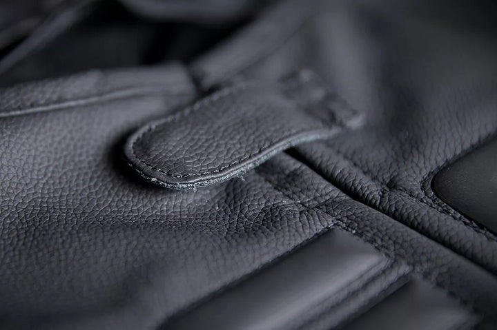 Stripped vest is perfect for clubs that require only club patches to be worn on members' vests, Large accessible back panel for attaching club patch, Sized to fit over current riding jacket or use side-fit adjustment straps to wear alone, Premium 1.4mm leather chassis, Removable D3O® Viper back protector, Cross-draw storage pockets, Premium YKK® zippers, Icon relaxed fit with straight body