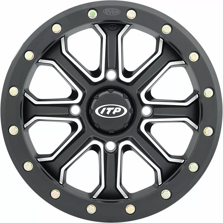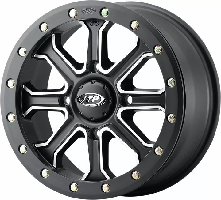 Beadlock design insures outer bead stays seated in demanding environments, Closer to OE offsets for optimum fitment and performance, ITP Exclusive "Rock Armor" inner wheel lip, Matte black finish with machined edges, Center cap and valve stem included, EU load rating: 544,31 kg.