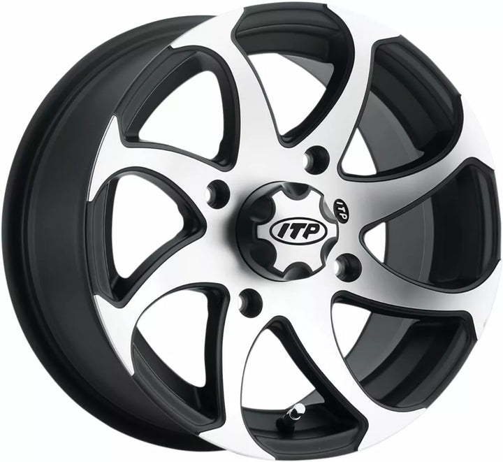 The ITP Twisterᆴ is the first and only directional wheel in the market to showcase consistent forward facing spokes on all four corners of the vehicle, Design aesthetically showcases forward movement on all four wheels, giving a really unique visual with solid functionality, Comes with exclusive ROCK ARMORᆴ inner wheel lip, Black center cap included, Lug nuts available separately.