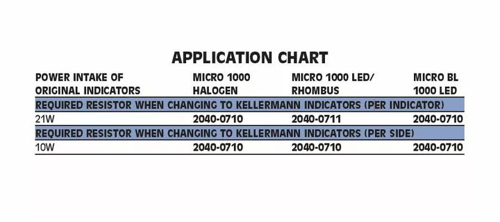 , When using micro 1000 DF and a light control bulb, one additional resistor at 33 ohm (PART #2040-0712) for the rear light and one additional resistor at 7,5 ohm (PART #2040-0711) for the brake light are required.