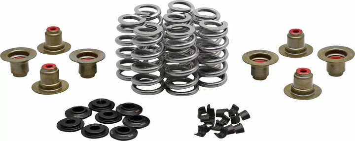 Progressively wound springs using Kobe super-clean, chromium silicon(CrSi) based wire that is heat treated and shot peened, Tight-tolerance, FEA-designed hardened steel Posi-Loc™ style upper or titanium retainers to ensure correct assembly height and resist keeper "pull through", Heat treated (H.T.) steel basewashers are designed to fit on top of either the OEM or KPMI tophat seals in this kit, Made in the USA, Kit uses OEM-style valve keys (sold separately)., '23-'24 CVO's check valve lift to deteremine compatibility with Kibblewhite Precision Machining Inc. (KPMI®) spring kits.