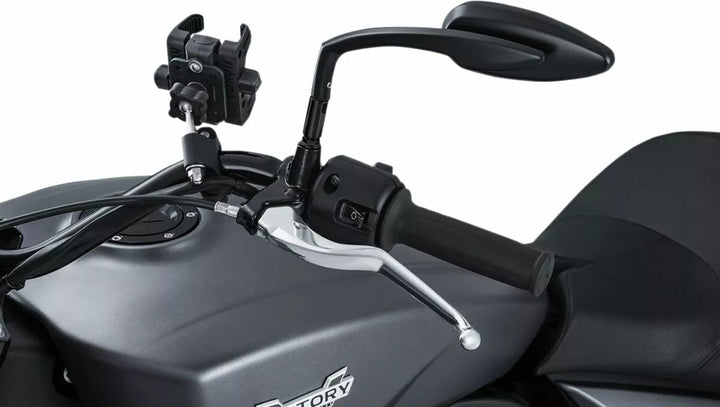 Provide a raised mirror mount location when mounting Kuryakyn mirrors, Allow clearance from brake master cylinder and greatly improve visibility, Raise mirror mounting position approximately 1-1/2", Quality stainless steel construction, Fits Honda, Kawasaki and Suzuki models (all), Indian '14-'16 models, and Victory models (all except Vision).