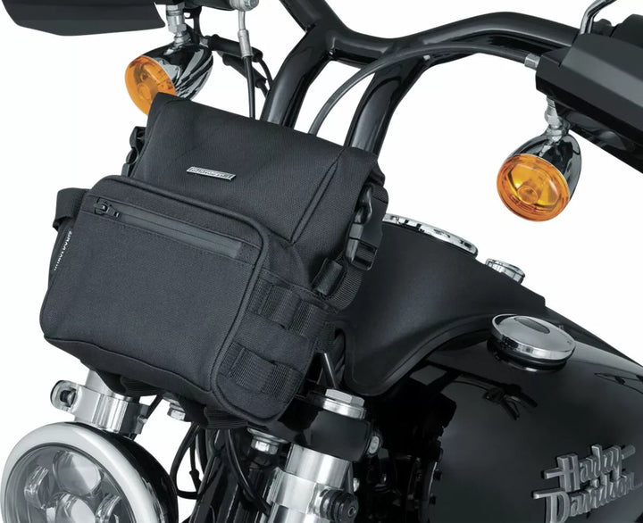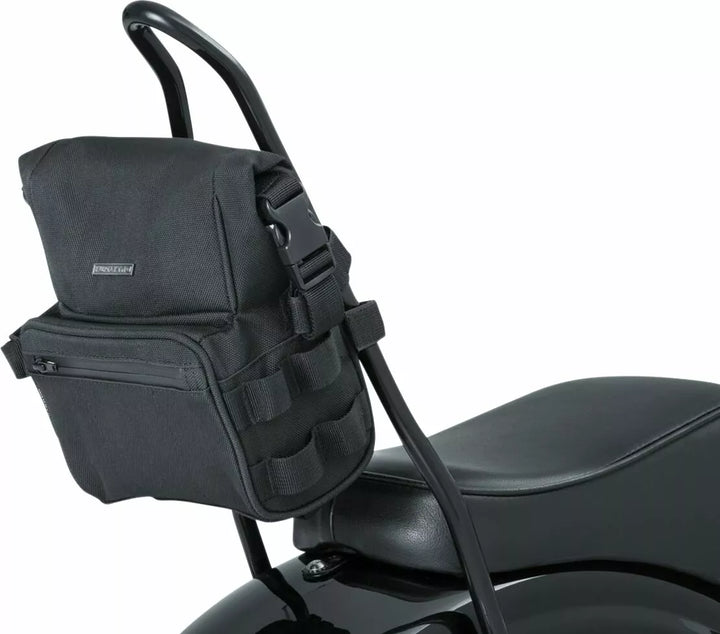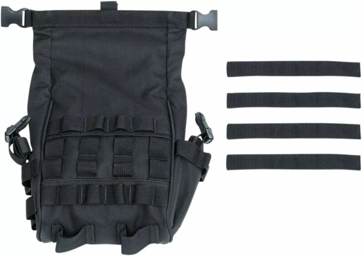 Durable UV-rated, weather-resistant 1200 denier textile material, Roll top design with high-strength hook and loop closure for storage versatility and water resistance, Fully adjustable convenient speed-buckle clasps, Flexible hook-&-loop straps coupled with multiple MOLLE modular attachments points, Safe & secure storage for wallets, sunglasses, phones, road sodas, tools, & more, Front and side quick-stash pockets