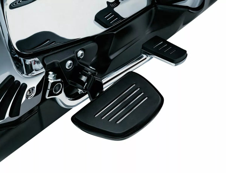 The compact size of a footpeg with the comfort of a floorboard, The 3/4" drop-style mount features interlocking splines and provides more legroom and slight angle adjustability for added comfort, Maintains stock-like ground clearance for optimum control, Mini boards measure 5-1/2" L x 4" W