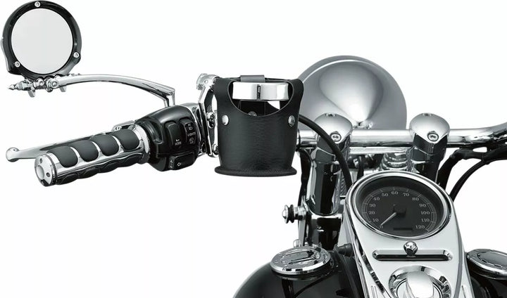 Easy on/off snap design, Made from PVC leather, Drink pouch is collapsible for storage, Beverage carrier only allows you to update any ring-style Küryakyn drink holder with the Snap-n-Go drink carrier
