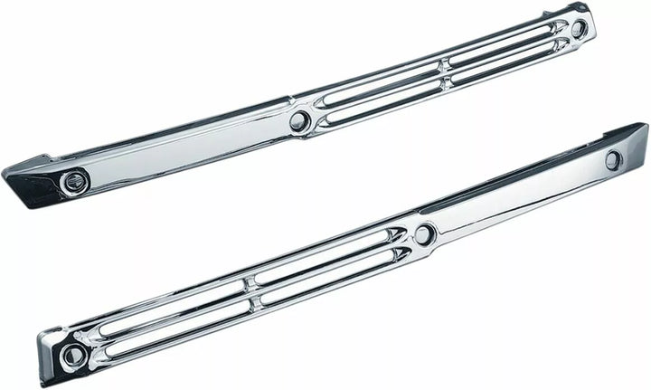 Chrome, radiused edges complement the flowing lines of the fairing, Stock-like fit allows for the use of OEM reflectors or accessory lights, Special fasteners and "Hot Spot" chrome end plugs place the finishing touches on this great-looking piece of trim
