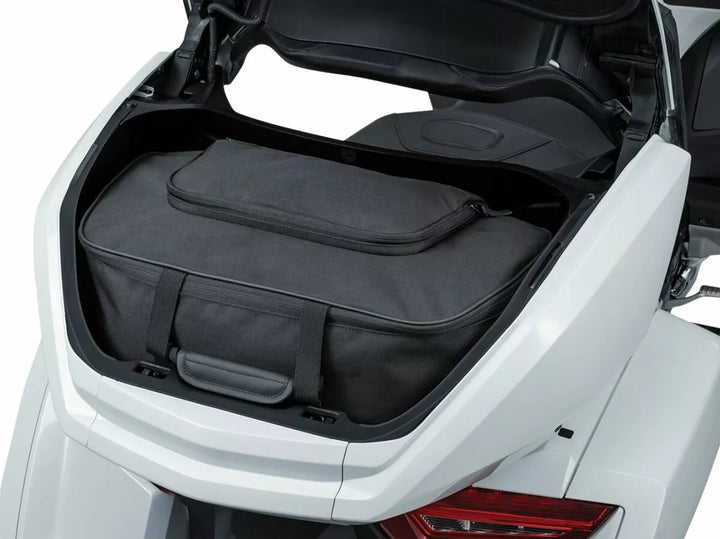 Durable and lightweight 1200 denier polyester construction with PVC backing, Extended zipper pulls offer easy access with or without gloves, Collapsible design for convenient storage when not in use, Includes removable padded shoulder strap and soft-touch carrying handle for easy portability off the bike