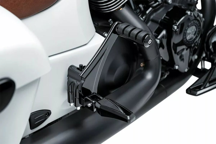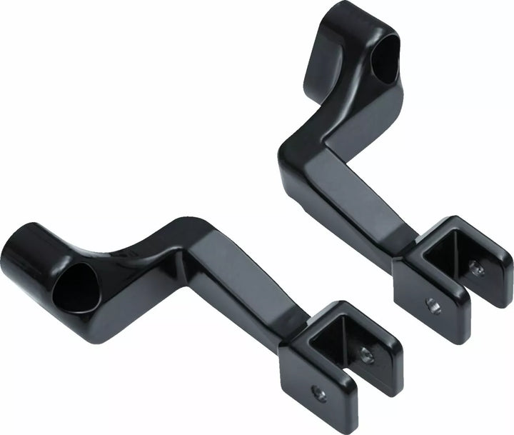 Allows installation of Kuryakyn adjsutable passenger pegs on Chief, Chieftain, and Dark Horse models, Can reuse stock passenger pegs on any Kuryakyn pegs using splined adapters, sold separately, Relocates passenger peg location to a more comfortable, ergonomic position, Durable aluminum construction with gloss black finish, Adjustable passenger pegs, Part # 1620-1315 and 1620-1725 sold separately