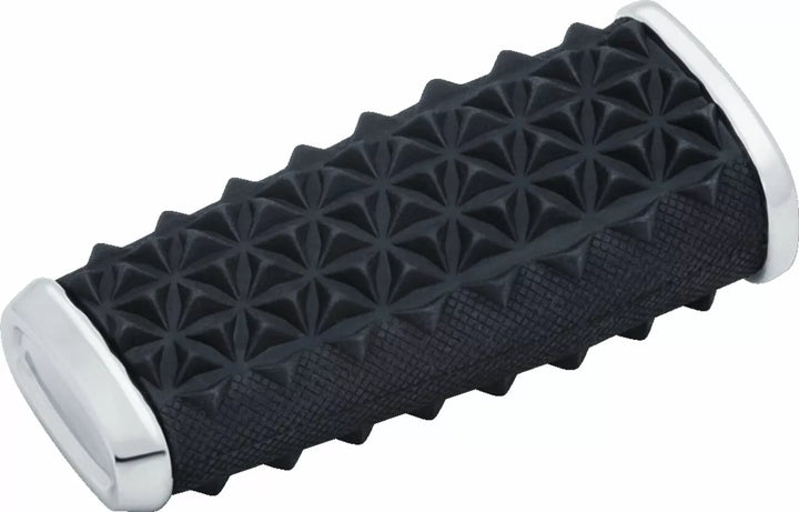 Steamlined aluminum housings wrapped in soft EPDM rubber, Knurled rubber features a shark tooth-inspired design and offers ideal traction, Styled to match Kurakyn Thresher grips and pegs