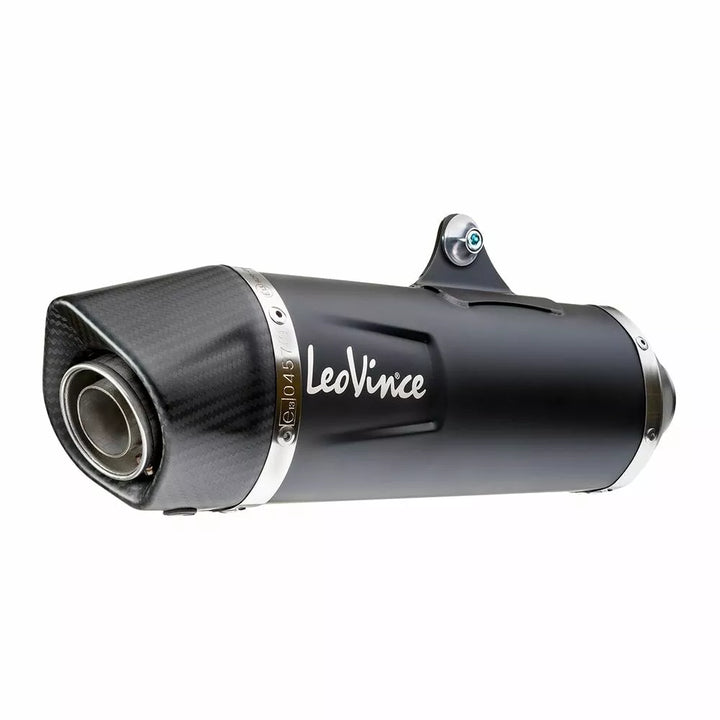 NERO EXHAUST SYSTEM, Aggressive style and sharp lines., LeoVince Nero is the muffler for motorbikes and maxi-scooters with a dark and modern look, the result of LeoVince's constant research of quality steels and exclusive processes., FEATURES, ASSI 304 Stainless Steel Sleeve, Carbon End Cap with Matte Clear Coating for UV Resistance, Metallic Ceramic-Based Black Paint, Matte Finishing, Laser Etched LeoVince Logo