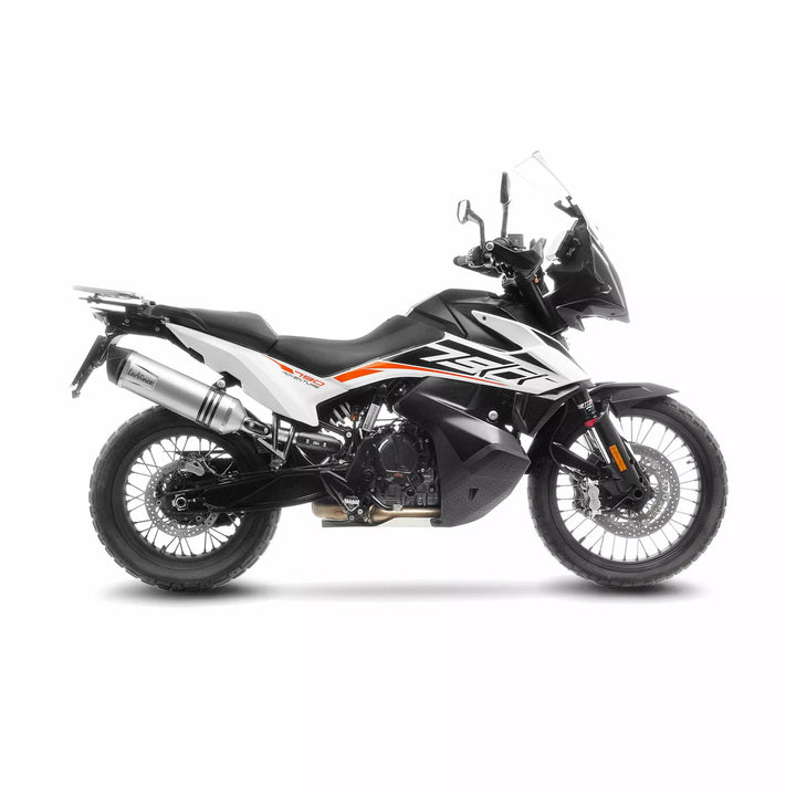 LV ONE EVO Stainless Steel is the synthesis between tradition and modernity., It combines the LeoVince classic style looks and innovation in the research of the most performing and lightweight materials., Features, AISI 304 stainless steel sleeve, Full carbon or stainless steel end cap, High temperature resistant packing (1,650 ᄚF), Adjustable full carbon fastening strap, Laser etched LeoVince logo