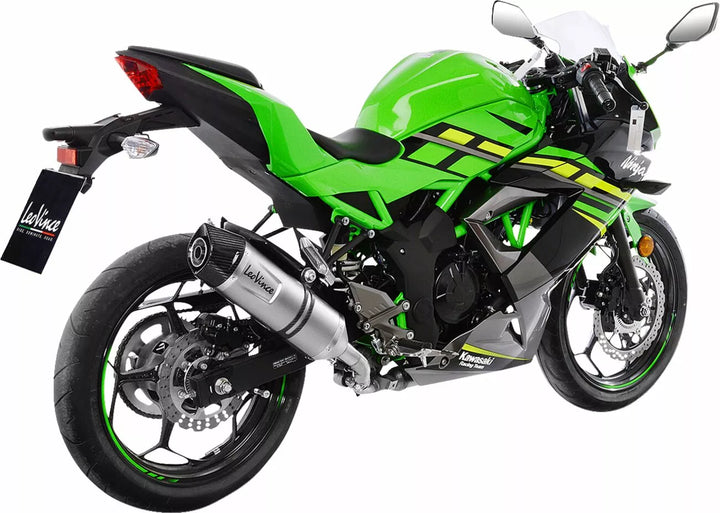 LV ONE EVO Stainless Steel is the synthesis between tradition and modernity., It combines the LeoVince classic style looks and innovation in the research of the most performing and lightweight materials., Features, AISI 304 stainless steel sleeve, Full carbon or stainless steel end cap, High temperature resistant packing (1,650 ᄚF), Adjustable full carbon fastening strap, Laser etched LeoVince logo