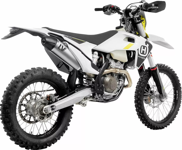 Hand made from AISI 304 stainless steel, TIG welded for long-lasting performance, Media-blasted for a perfect textured surface finish, Lightweight carbon fiber end cap, Welded mounting brackets with rubber damper or carbon fiber strap offering strength and reliability, USFS Approved spark arrester included, Meets USFS and FIM World Enduro sound regulations, Straight-through race-developed muffler core, to unleash a deep sound, Industry leading muffler repack intervals due to the highest quality and density of packing material, Optimized torque, more usable performance, Wash plug included in the box, Made in Europe