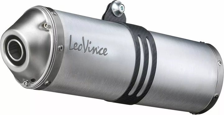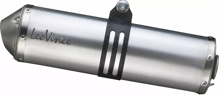 Silencer has a semi-direct internal structure and is fastened to the frame by carbon clamps, The format of the silencer is tailored according to the specific engine model in order to boost the torque and the maximum power rating, Laser etched LeoVince logo, Includes a spark arrestor that meets U.S.F.S. homologation requirements from the United States Department of Agriculture ヨ Forest Service