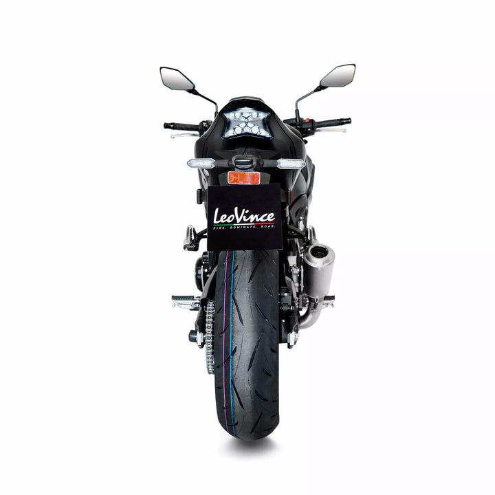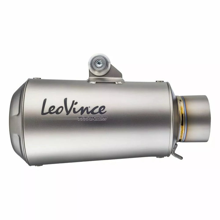 LV-10 TITANIUM (RACING DNA), Developed in collaboration with the LeoVince Racing Department and applying the experience gained in the Moto 2 and Moto 3 championships, the LV-10 Titanium expresses the best racing technology applied to an exhaust terminal intended for stock motorbikes., The silencer and the the manifold are made using Titanium Grade 1, a pure material with high characteristics of ductility, strength and corrosion resistance while it guarantees a 30% weight reduction compared to stainless steel., TIG welding is done entirely by hand and underline the craftsmanship of the product while retaining its racing DNA., Features, Entirely Made in Titanium Grade 1, Weight reduced by 30% Compared to the Stainless Steel Version, Hand MadeTIG Weldings, Laser Etched LeoVince Logo, Laser Cut Bracket