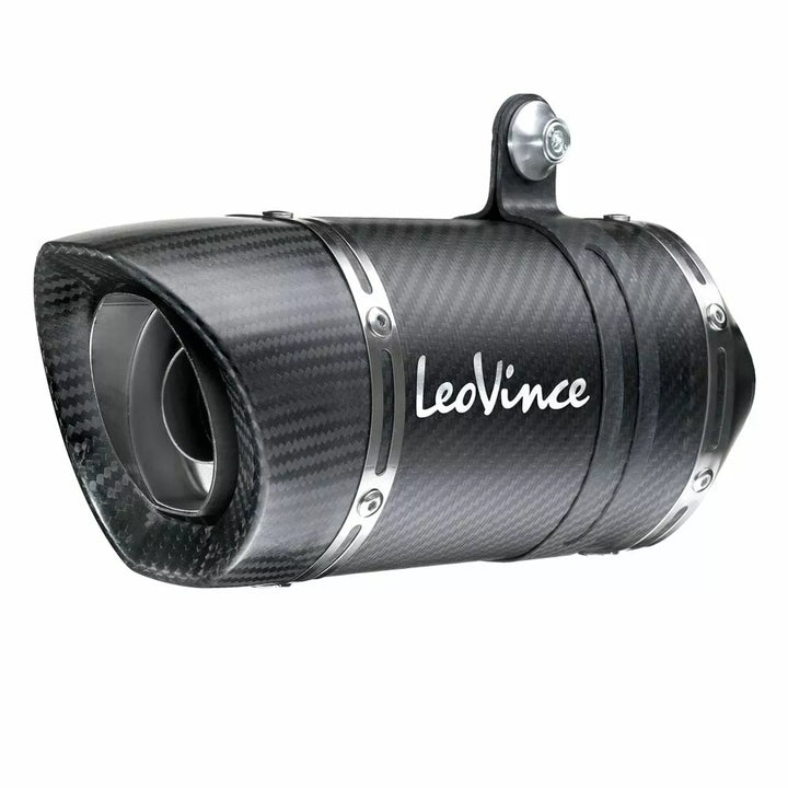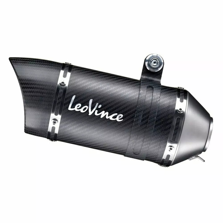 LV PRO CARBON FIBER (Compact Power), The LeoVince LV PRO Carbon Fiber is the perfect combination between racing look and compactness., The LV PRO slip-on is the result of the LeoVince research of the best materials and craftmanship. , LV PRO carbon fiber sports a new aggressive and racing look with its "Shark Cut" end cap, which, combined with the small size, fully enhances the aesthetics of your bike., Features, Full Carbon Sleeve, Carbon "Shark Cut" End Cap with Matte Clear Coating for UV Resistance, Matte Finishing, High Temperature Resistant Packing (1,650 ᄚF), Full Carbon Fastening Strap