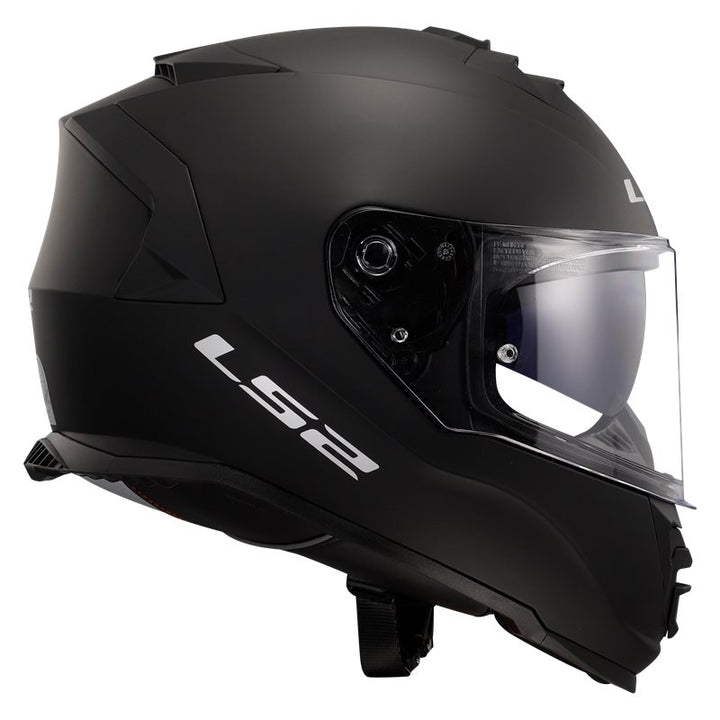 Sidovy av LS2 Integral Mc-Hjälm Storm II Matt Svart med modern design, klar visir och robust konstruktion för motorcykelsäkerhet.