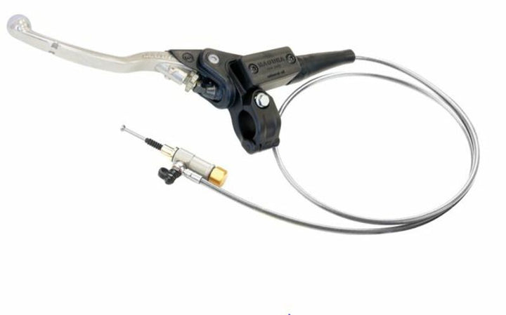 Magura developped HYMEC clutch system, a conversion kit for traditional able system in hydraulic clutch. This kit reduces from 10 to 20% the effort to disengage, greatly improving clutch feeling. The supplied kit comprises a master cylinder, a hose and a receiver cylinder Master cylinder Magura 167 mounted on several european off-road bikes, are the same as HYMEC models. They are fully reviewable by a complete range of parts. New colour : blackFold away leverNew design : feeling more accurateUltra resistant alloy leverMounting kit : new compact design
