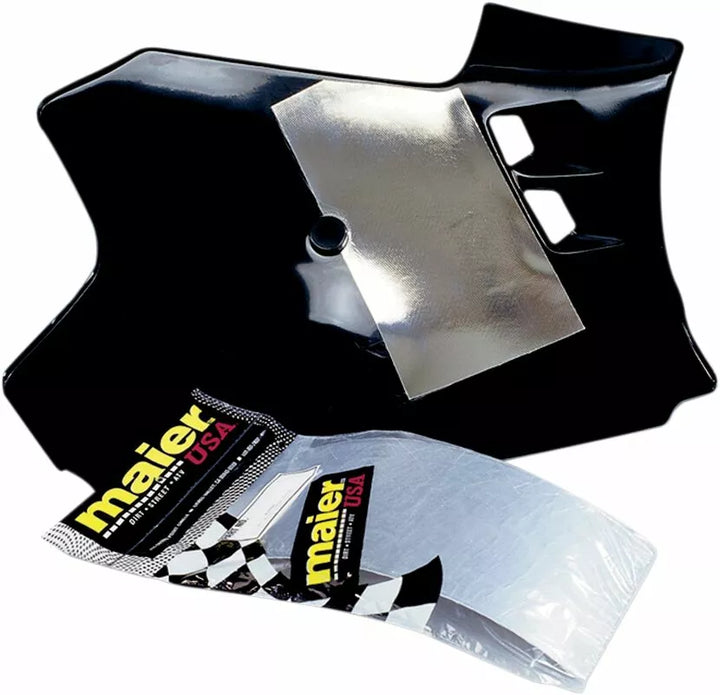 Protect your plastic side panels, engine air scoop, etc. from exhaust pipe heat, Handy heat-proof strips have adhesive on one side and aluminized fiberglass on the other, Capable of withstanding 400°F (204°C) constant heat or 500°F (260°C) intermittent heat, Standard kit includes two 6" x 2" strips, Large kit has one 6" x 12" strip