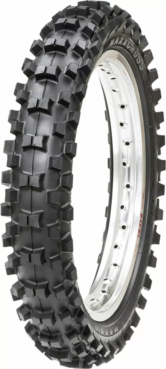 Maxxcross MX-ST is designed to compete at the highest levels of motocross and supercross. Designed and tested with 7X Supercross champion Jeremy McGrath, the new tread pattern, compound, and tire composition provide the stability, predictability, and traction that the top tiers of motocross demand, Tread pattern designed to optimize traction and braking performance while inspiring confidence and predictability in intermediate to soft soil conditions, Lightweight pliable carcass design improves ride comfort, impact absorption, and rider feel, Racing specific compounds deliver excellent traction and stability, Competition motocross/supercross