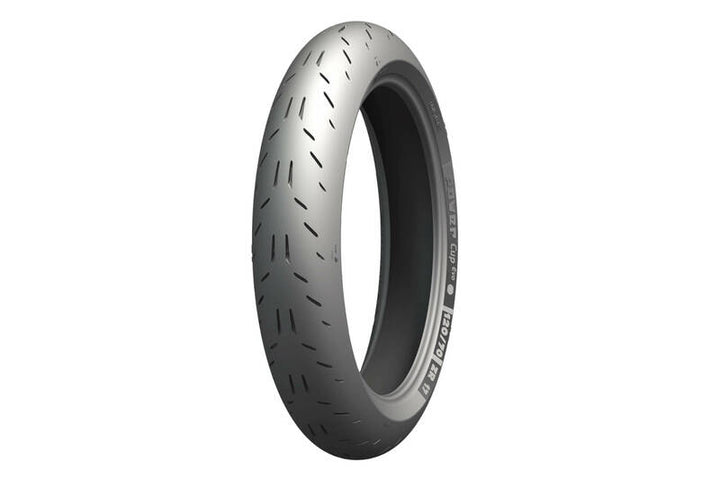 A versatile treaded racing tyre that provides excellent stability and warms up fast for maximum riding pleasure. Why choose MICHELIN Power Cup Evo tyres? Treaded race tyres A treaded version of the MICHELIN Power Slick Evo, MICHELIN Power Cup Evo tyres are approved for road use, but recommended for track use. Excellent grip MICHELIN Power Cup Evo tyres warm up quickly thanks to the versatile rubber compound and present a large contact patch to the road for reliable grip. Stability Michelin's Adaptative Casing Technology (ACT) provides improved stability on the straights and when cornering. Aspect_ratio: 70 Position: Front Rim_diameter: 17 Speed_index: (W) > 270 km/h Tire_category: Racing grooved (street legal) Tire_family: Motorcycle & Scooter Tires Tire_load_index: 58.0 Tire_pattern: POWER CUP EVO Tire_Structure: Radial Tire_width: 120 Tubeless_or_Tubetype: TL - Tubeless