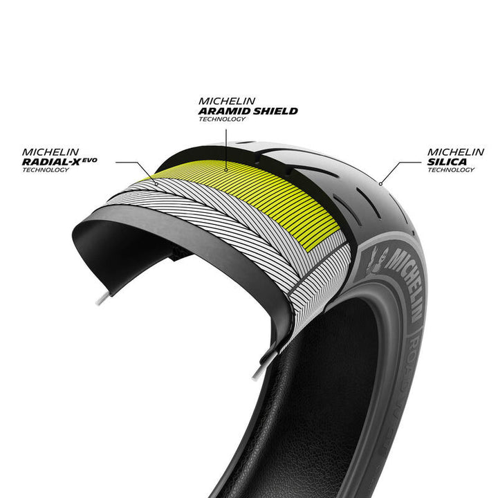 Reliable in wet conditions: proven wet grip thanks to advanced, road-tested Michelin technologies in the Touring and Sport Touring segments - sipes in the front tire tread and silica in both the front and rear tires