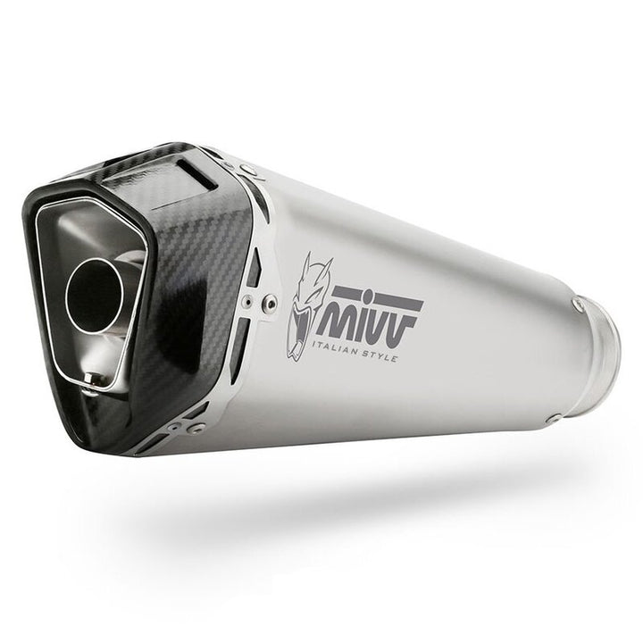 Designed to improve the aestethics, sound and performance of the bike, Mivv slip-on exhausts are the result of maximum attention to design, with the aim of satisfying those who want to distinguish themselves by the look of their motorbikes.