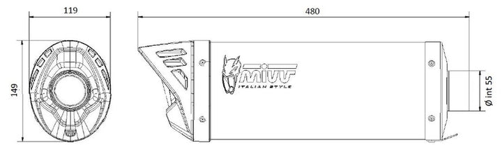 Mover is the exhaust designed for the scooter range. It is produced in stainless steel with an oval section and it is provided with an exit cap in HPP material. It features a black finish made with a special ceramic-based paint, resistant to high temperatures. The Mivv logo is lasered to enhance its exclusivity. Lightness and unmistakable sound complete a product that further improve the look of the scooter. Muffler finish: Black Steel Homologation: Not street legal Position: Right
