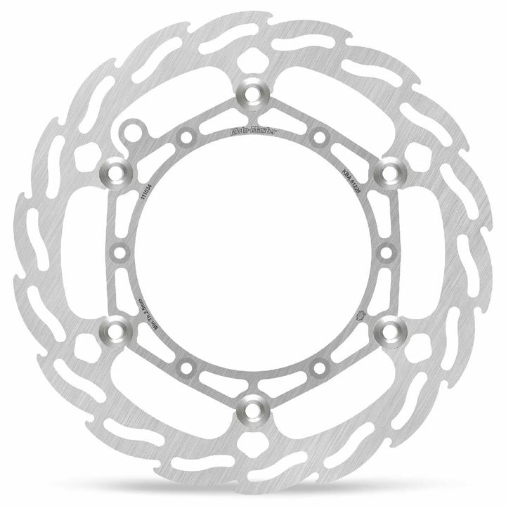 Our oversize (OS) MX/Offroad discs are 260mm and utilize our Flame design, offering an improvement of up to 35% in braking performance compared to OEM, Oversize discs fit with the use of Moto-Master's fully CNC-machined 6082 billet aluminum adapter bracket, relocating the stock brake caliper to the correct position, Must be used with Moto-Master's adapter brackets.