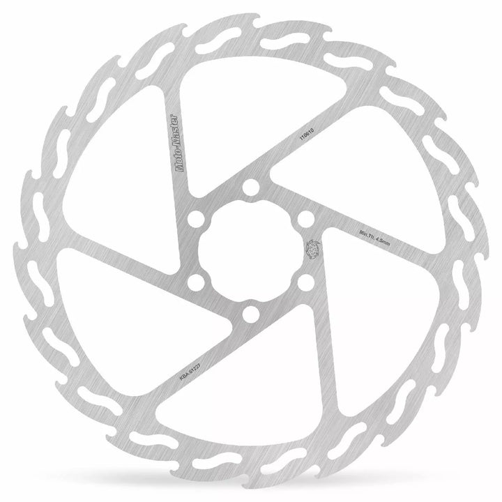 Flame shaped venting slots and outer perimeter ensure an equal amount of contact surface between the brake pad and disc throughout the whole rotation of the disc., Smooth and more predictable braking action which allows you to brake harder., The FLAME Fixed discs are laser cut, CNC drilled, and precision double-grinded for perfect fitment and flatness, For best performance we recommend using Moto-Master Brake Pads with the matching Pad compound that best suits your type of riding.