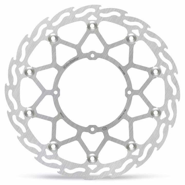 , Designed for use with stock Brake Calipers, Supermoto Street Discs are 4 mm thick and utilize a 320 mm floating design, Like the flame design outer ring, the inner carrier is in premium quality stainless steel, mounted with 10 stainless steel floaters