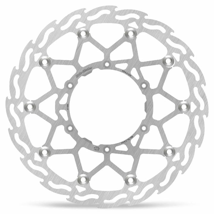 , Designed for use with stock Brake Calipers, Supermoto Street Discs are 4 mm thick and utilize a 320 mm floating design, Like the flame design outer ring, the inner carrier is in premium quality stainless steel, mounted with 10 stainless steel floaters