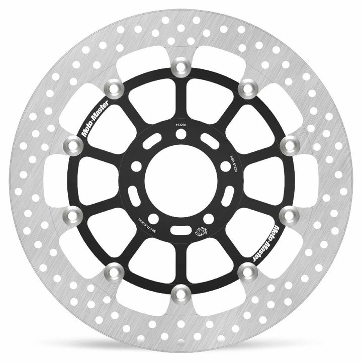A new standard in aftermarket circular-round brake rotors, Durable, premium quality stainless steel outer ring is laser-cut and precision-ground, Carrier is crafted from CNC-machined billet aircraft aluminum, black anodized and laser marked, Venting holes are sized and positioned exactly to ensure equal heat dispersion, even under high thermal stress, while the brake pad contact surface stays clean, Lightweight stainless steel floaters complete the package