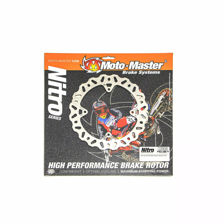 Attractive design, race-proven quality and competitive pricing make Nitro the perfect OEM replacement disc for most of your riders, Like Moto-Masterメs Flame discs, all Nitros are made of special hardened, low-carbon stainless steel for optimal durability and maximum stopping power, Design provides maximum heat dispersion while the carefully positioned cooling slots ensure optimal brake pad cleaning action in all conditions, Designed and engineered by Moto-Master to meet the demands of modern Motocross and Enduro racing