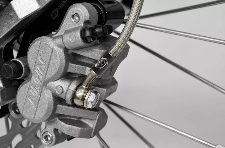 PTFE Hose liner with a stainless steel wired braid which is protected by a durable and lightweight PVC covering., Stainless steel banjos are used to eliminate any possible corrosion., The Banjos are adjustable to ensure torque-free mounting, Comes with Washers and fitment instructions., Stainless braided Brake Lines eliminate that モspongyヤ feeling of standard plastic Brake Lines.