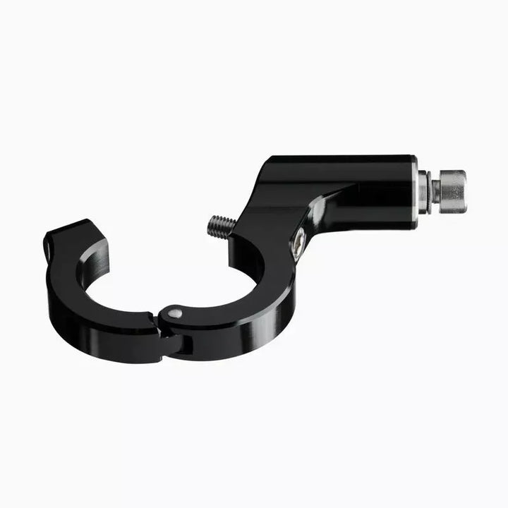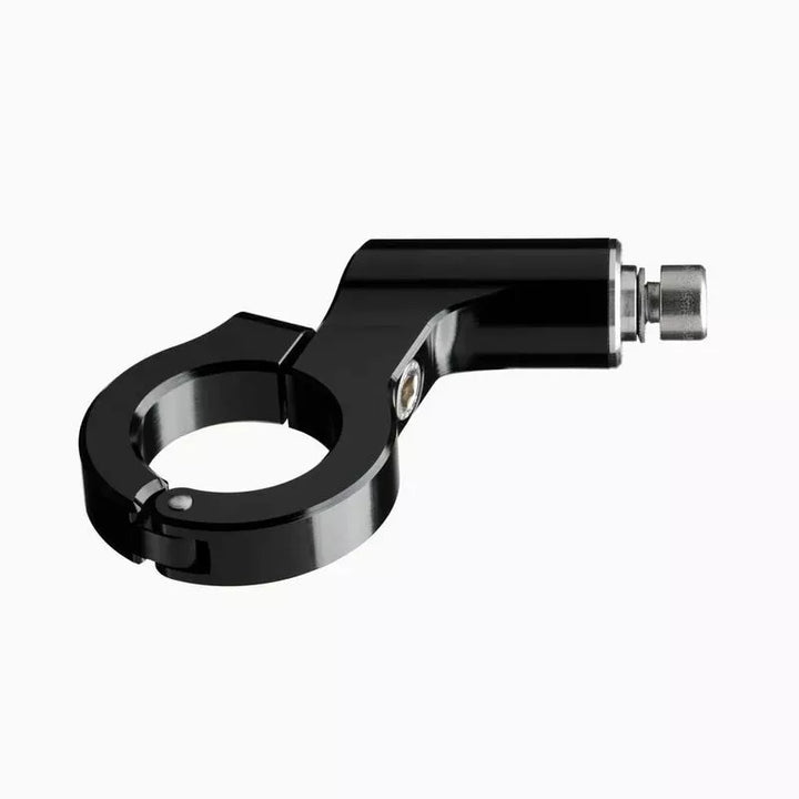 The compact solution with 110mm arm length, for scrambler or super moto. , Quick installation with a wide range of mounting options without modifications to the handlebars., The high-quality, CNC-milled folding clamp is extra narrow for minimum space requirements. , The integrated flip mechanism for folding the mirrors is ideal for narrow passages, when transporting vehicles or when there are space problems in the garage. , The mirror can be mounted above or below the handlebars., Our glassless mirror series mo.view is unique in the world. The special feature of our mirrors is the patented mirror surface, which is worked directly from the metal of the body. The aluminium itself is the mirror surface., The mirror body is very thin and light, resulting in a weightless design without a rim or frame. The convex mirror surface is produced by fly cutting using diamond tools on ultra-precision machines in Berlin. It is then made resistant to oxidation, corrosion and abrasion by an elaborate plasma coating in a vacuum., The mirror body, mirror arm and clamp are milled from solid aluminium on CNC machines and anodized to a high quality. All screws are made of stainless steel. The precise ball joint allows the mirror to be adjusted comfortably and very stably. Broken or fallen out glasses are simply not possible., The add-on mirror can be mounted above or below the handlebars. The arm can be swivelled and locks into place in 45° steps. , The mirror is suitable for the right and left side. It is mounted on the handlebars, depending on the version for 7/8" or 1" handlebar diameter. A free handlebar area of 10 mm width is required for mounting, no modifications to the handlebars or fittings are necessary., Diameter of the mirror body: 99 mm., Thickness of the mirror body without ball head: 5.6 mm., Length of the mirror arm: 110 mm., Clamp width: 10 mm., Weight: 260g., Scope of delivery: 1x rear-view mirror mo.view classic 110 pivot, with ECE marking, with 110mm arm, 1x pivot clamp & instructions manual.